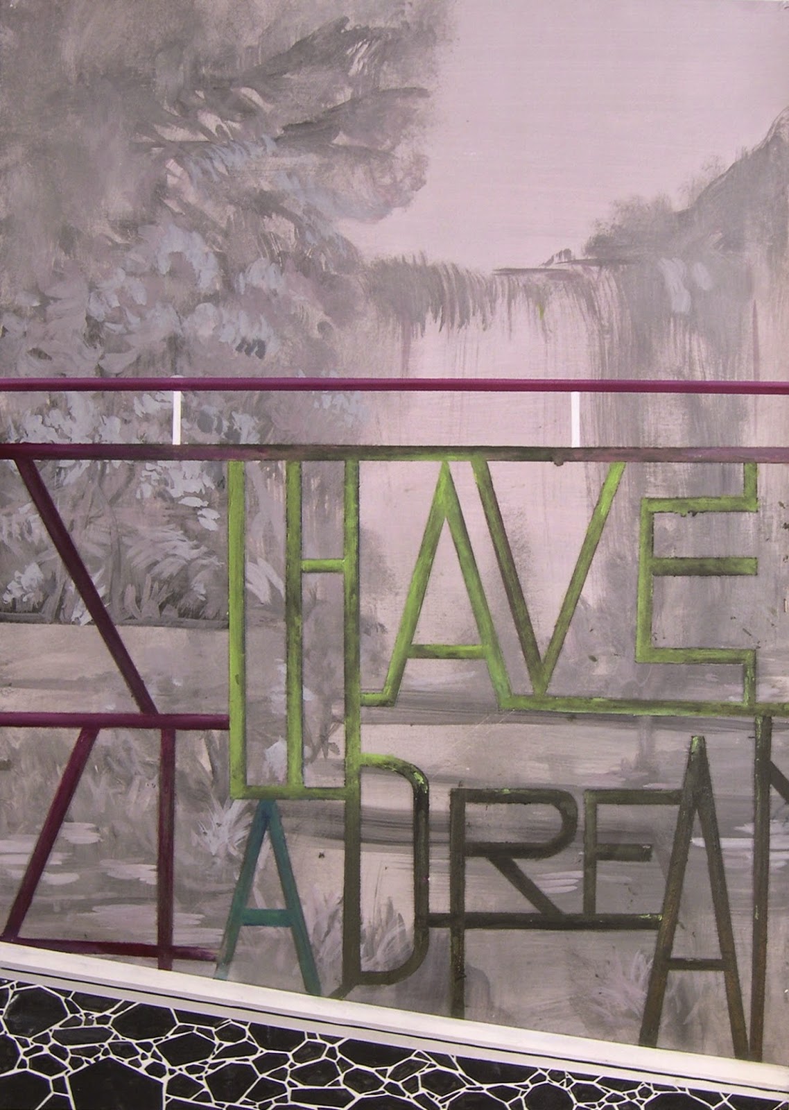 La muestra de Javier Parrilla (Sevilla, 1975) busca precisamente estos valores de la pintura. Sus obras en esta exposición son un largo diálogo con la pintura, un prolongado paseo por sus posibilidades. En una de sus obras aparecen rectángulos, triángulos y un círculo azul intenso perfectamente delimitados. Su misma exactitud parece empujarlos hacia fuera, mientras detrás de ellos, una pintura rica en veladuras, parece envolver un gran espacio cuya profundidad es difícil de precisar. Este espacio sin embargo lo encuadran los exactos lados de un rectángulo, como si se tratara de un cuadro dentro de otro. Que este gran rectángulo aparezca inclinado unos treinta grados respecto a la cuadrícula del lienzo, añade a la oposición entre geometría y pintura una sutil dosis de ritmo. Es quizá el caso más sencillo de relevancias que puede manejar la pintura. Otro cuadro, justo enfrente del que acabo de comentar, es algo más complicado: abre arriba una gran profundidad, parecida a un horizonte marino, y otra, suave y cadenciosa, abajo. Pero esas profundidades contrastan con formas que subrayan la superficie real del lienzo e invitan a la mirada a permanecer en el exclusivo plano del cuadro sin cruzarlo. En ocasiones, como ocurre en la obra que recuerda a Martin Luther King, el texto en primer plano, I have a Dream, forma una suerte de celosía ante un hondo paisaje. No es ciertamente un paisaje pero el autor pone en el lienzo la pintura como suele hacer el paisajismo. Todo esto muestra que Parrilla recorre la pintura, la ensaya, la estudia y la ofrece al espectador que sea capaz de verla y disfrutar de ella.